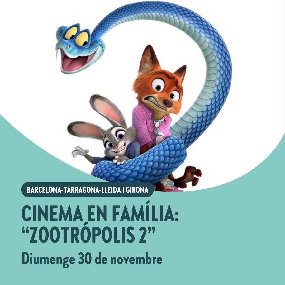 El próximo domingo 30 de noviembre de 2025 os invitamos a ver la película "Zootrópolis 2" en compañía de otras familias de Ficat en 4 provincias.